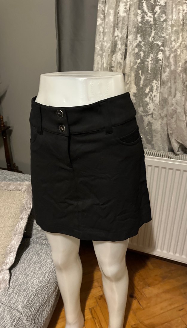 Düğmeli Siyah Mini Etek