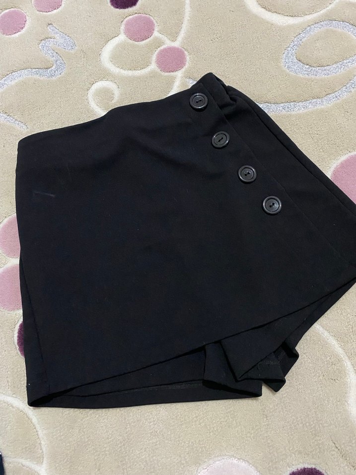 Düğmeli detaylı, siyah renkli, sentetik kumaştan üretilmiş, bol kesim mini etek. Günlük kullanıma uygun trendy ve goth tarzda. Markası trendyol