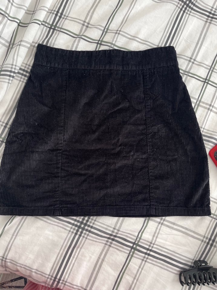 Düğmeli Siyah Mini Kadife Etek
