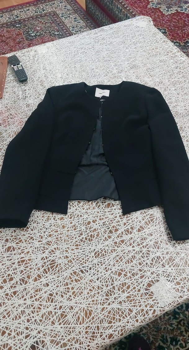 Siyah mini blazer, kesik yaka ve düğmeli kapanışa sahiptir. Uzun kollu, regular fit ve yumuşak sentetik kumaştan üretilmiştir, ofis için uygundur.