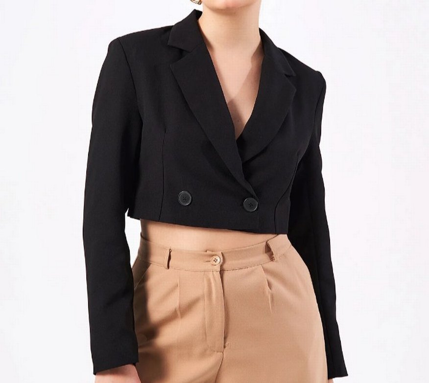 Düğmeli Siyah Mini Kadın Blazer Ceket