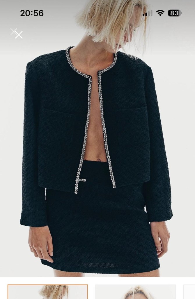 Düğmeli, siyah mini ceket, uzun kollu ve yakası kesik. Sentetik kumaştan, günlük kullanıma uygun, trend Paris tarzında. H&M suni elmas işlemeli bukle ceket Etiketli sıfır ürün Ürün bol kalıp bedeninizden 1 beden küçük almalısınız L beden - 42&44 e uygun