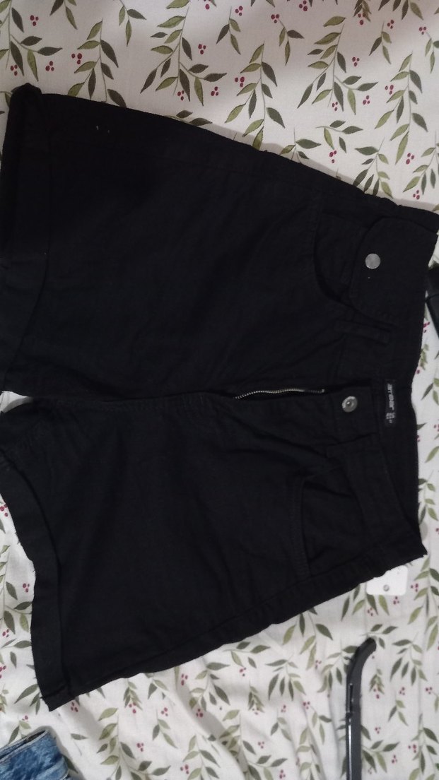 Sentetik kumaştan, düğmeli, bol kesim siyah mini kadın denim şort. Günlük ve sokak stiline uygun.