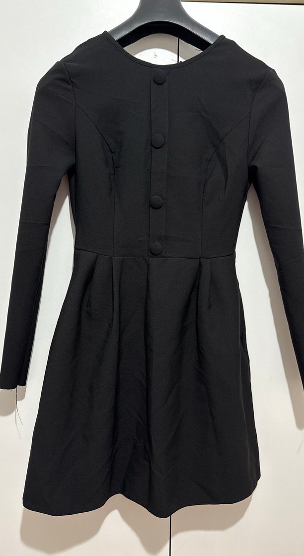 Düğmeli Siyah Mini Kadın elbise