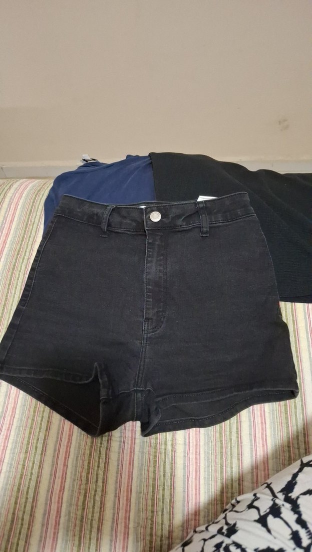 Düğmeli, kısa boy, siyah renkli, dar kesim kadın kot şort. Günlük rahat sokak stiline uygundur.