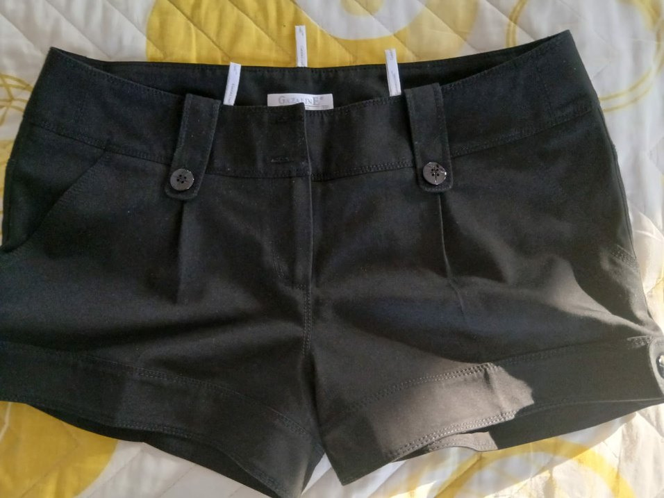 Düğmeli detaylı, satenimsi kumaştan yapılmış siyah, dar kesim mini kadın şort. Günlük kullanıma uygun, şık ve rahat.Gazalle marka ve 38 bedendir. Şort boyu 30 cm dir.