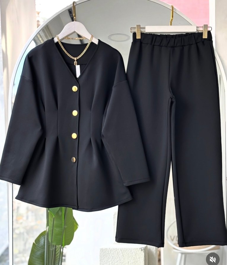 Düğmeli Siyah Mini Kadın Takım Elbise