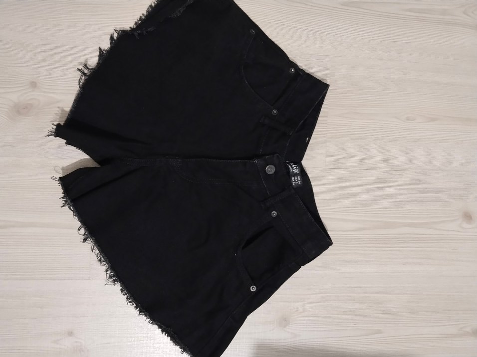 Düğmeli Siyah Mini Kot Şort