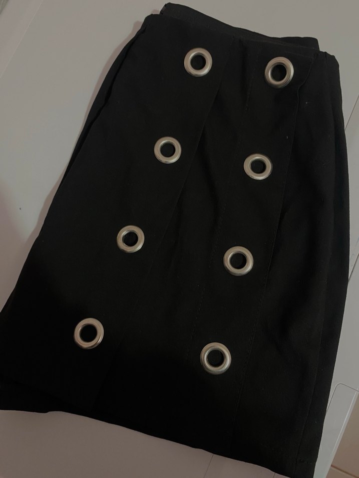 Düğmeli, siyah gotik tarzda, sentetik kumaştan yapılmış midi kalem etek. Dış mekan kullanımı için uygun, şık ve avangart bir görünüme sahiptir. Quzu markalı m beden şort etek hicbir sorunu yok