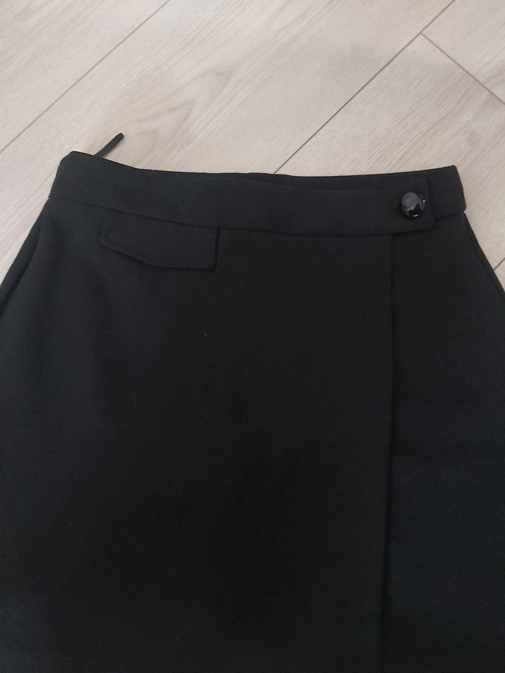 Düğmeli detaylı, düz siyah mini şort etek. Çok güzel bir kumaşı var %55 viskon, %42 polyester ve %3 elastan...Çok şık ve bir iki kez kullanılmış yeniden farksız....Hiçbir kusuru yok prıl prıl...