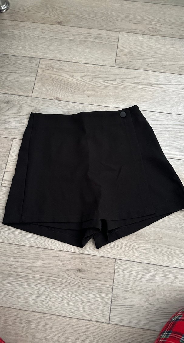 Düğmeli Siyah Mini Şort Etek