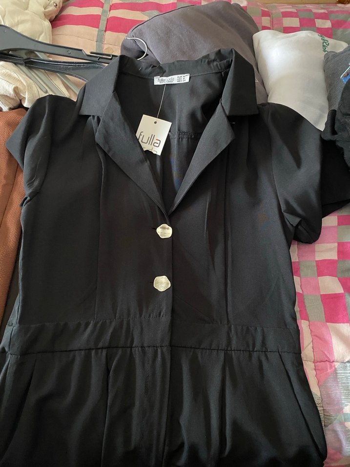 Düğmeli Siyah Mini Tulum