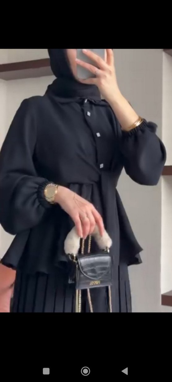 Düğmeli Siyah Mini Uzun Kollu Bluz