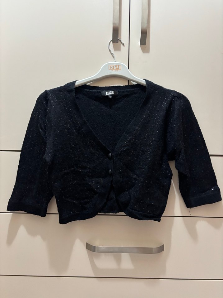 Düğmeli Siyah Mini Uzun Kollu bolero Hırka