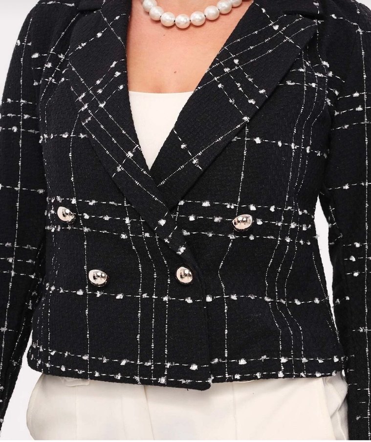 Düğmeli Siyah Nakışlı Kadın Blazer Ceket 2 kez giyildi
