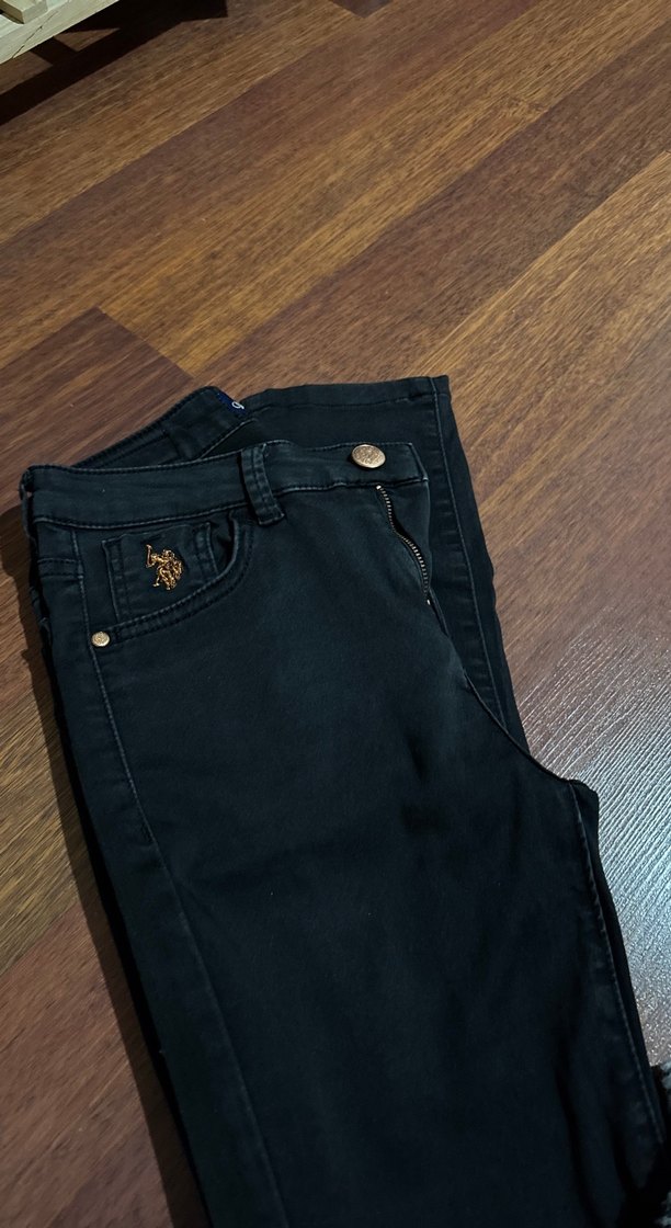 Düğmeli ve nakış detaylı siyah kot pantolon, günlük rahat kullanım için regular fit kesime sahiptir.