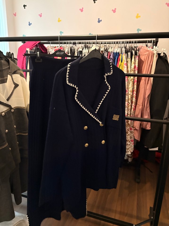 Düğmeli Siyah Nakışlı Midi Ceket takım