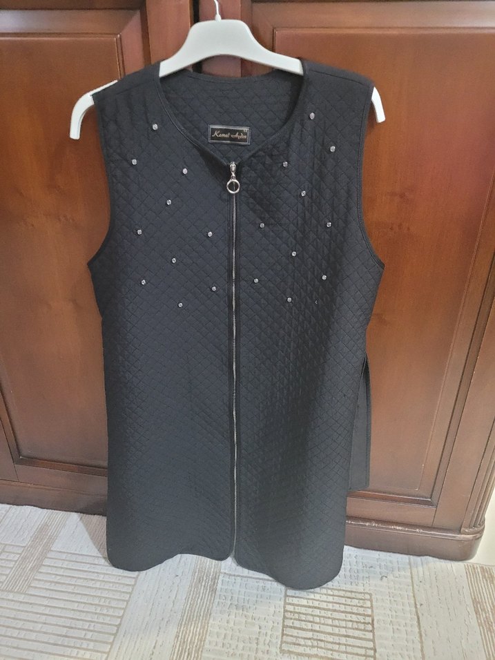 Düğmeli, V yakalı, nakış detaylı siyah midi yelek. Sentetik kumaştan, regular fit, günlük rahat stil için uygun.