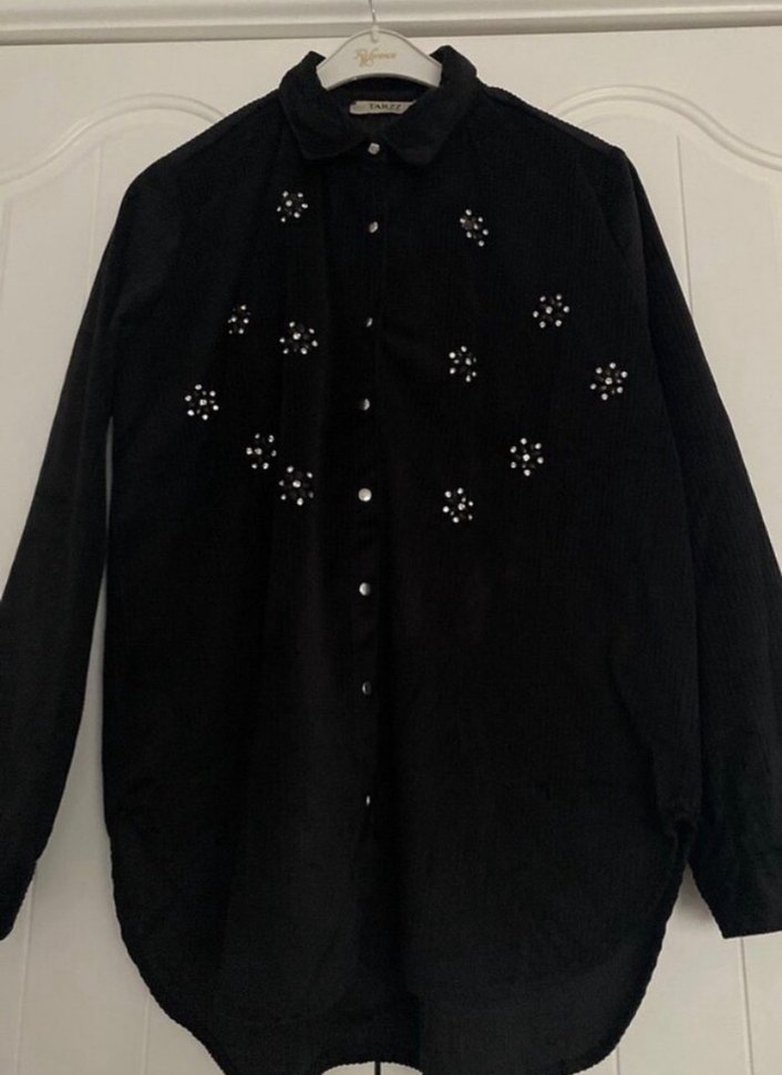 Düğmeli Siyah Nakışlı Uzun Kollu Gömlek