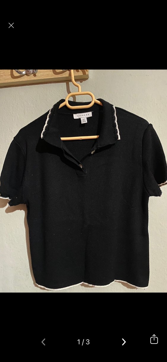 Düğmeli, polo yaka ve kısa kollu siyah pamuklu tişört. Rahat ve bol kesimiyle günlük kullanıma uygundur. Bir iki defa giyildi