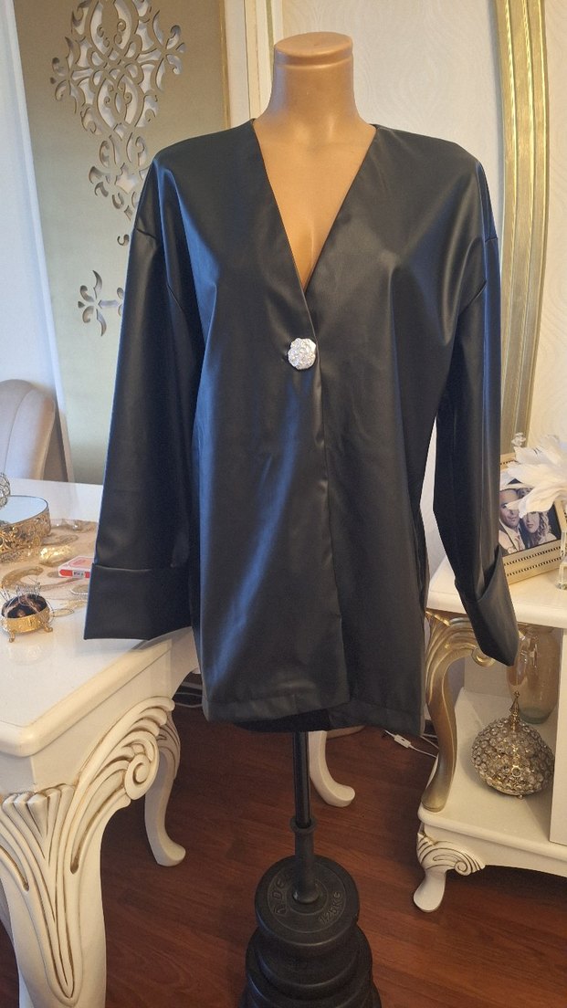 Tek dügmeli yakasiz deri ceket urun olculeri resimde mevcuttur