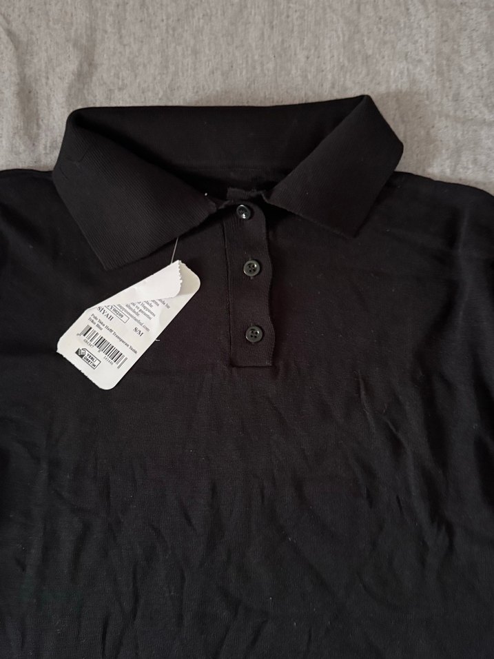Siyah renkli, yakalı ve düğmeli polo tişört. Nefes alan kumaştan, kısa kollu ve rahat bol kesimdir. iç gösterir