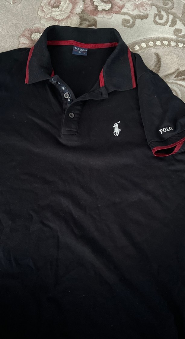 Düğmeli, kırmızı detaylı yakasıyla siyah, dar kesim erkek polo tişört. Sentetik kumaştan ve baskılı logo ile günlük kullanıma uygun. ️♂️