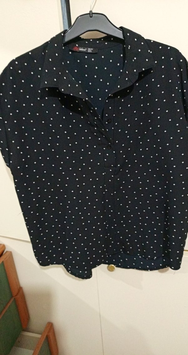 Düğmeli Siyah Puantiyeli Kadın Gömlek