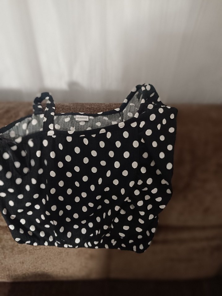 Siyah zemin üzerine beyaz puantiyeli penye hiç giyilmedi sıfır .