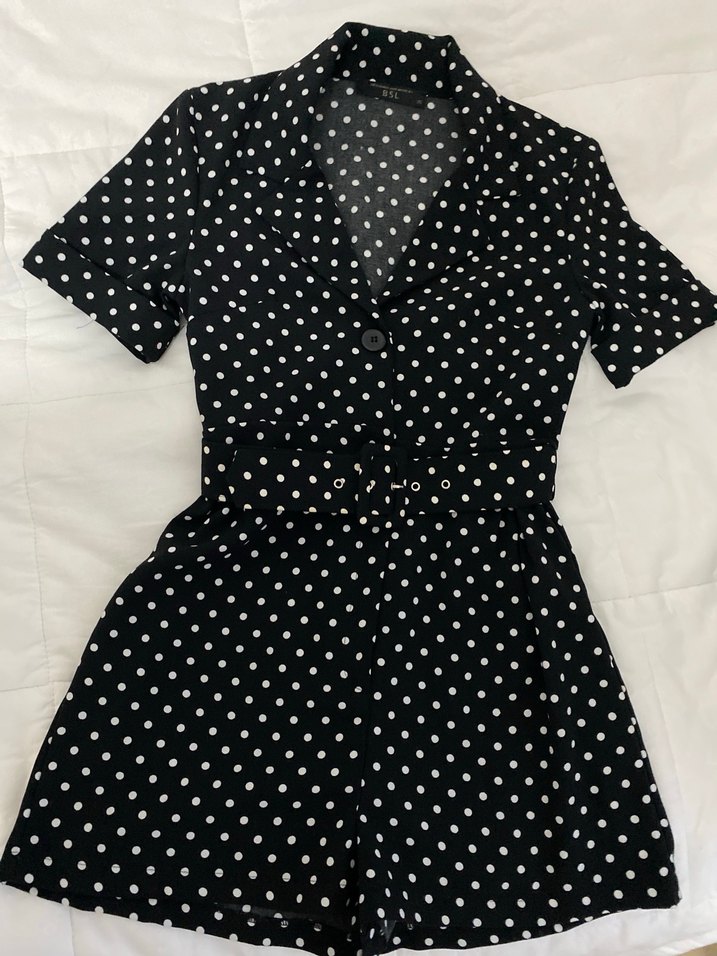 Düğmeli Siyah Puantiyeli Mini Şort Tulum