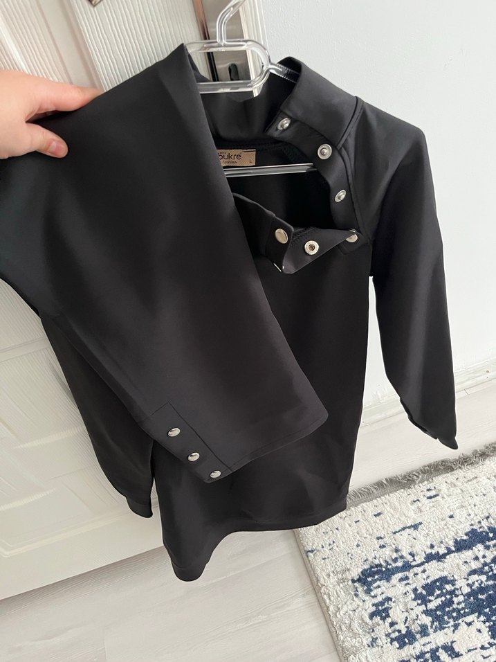 Düğmeli, uzun kollu siyah scuba kadın takım , kesik yaka ve regular fit ile günlük kullanıma uygundur. Goth ve avangart tarzda şık bir seçim.