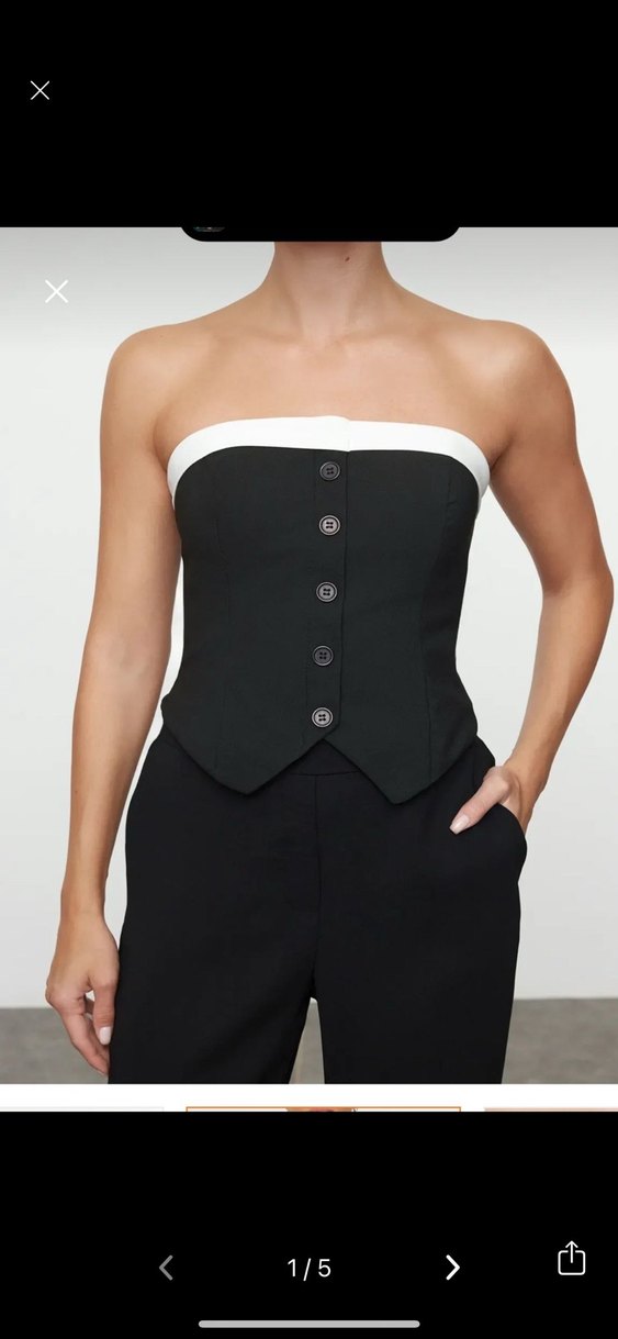 Düğmeli Siyah Straplez Midi üst