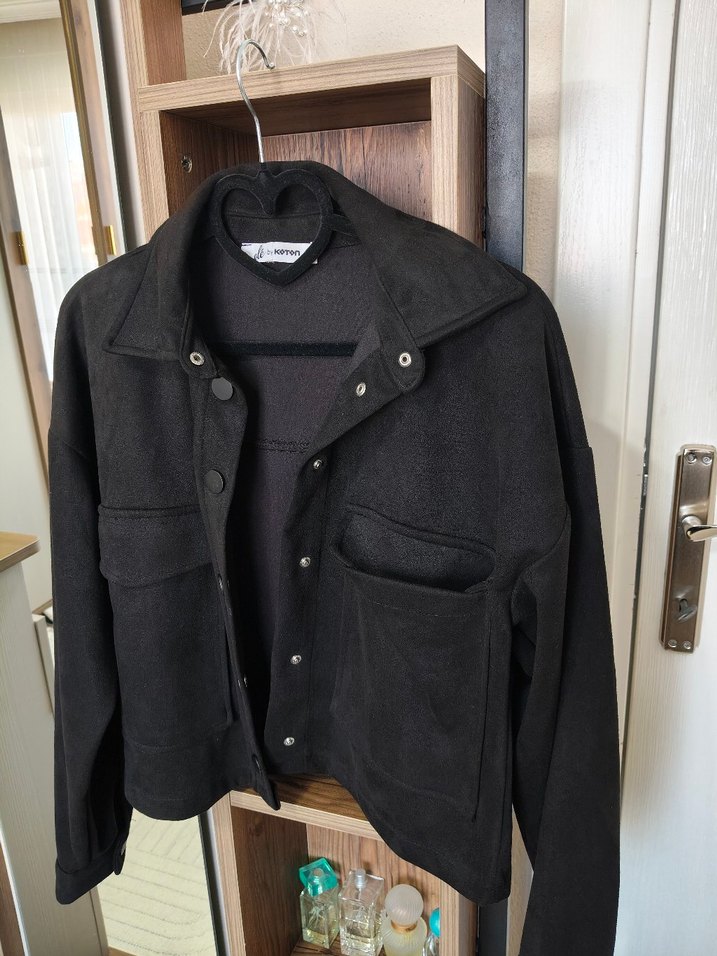 Düğmeli Siyah Süet Kadın Ceket
