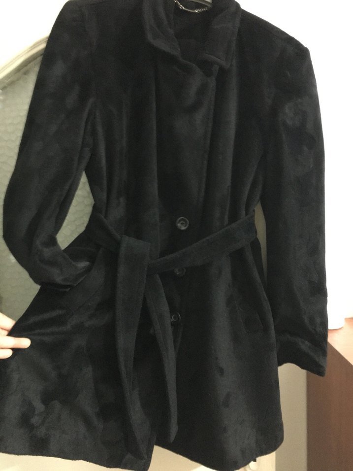 Metre eşliğinde fotoğraflar var Kaliteli kumaş az parlak doğal kürk benziyor yumuşak pamuklu astar Beden etiketi yok metre eşliğinde ve kemerli, uzun kollu siyah süet kaban. Notch yaka ve klasik zarif goth tarzı ile ofis ortamına Rahat bol kesim kemerle kullanılabilir nişantaştsn bir butik ürünü İç dış temiz çok şık kombineler yapılabili eteklerle pantolonlarla