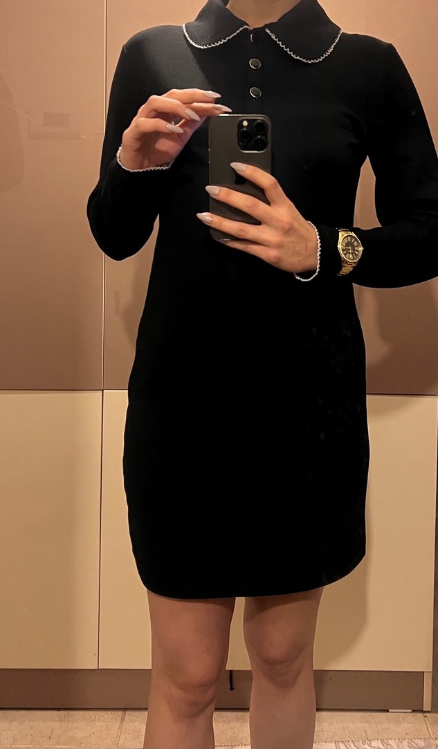 Düğmeli, uzun kollu, yüksek yakalı siyah süet midi elbise, ofis için şık ve trend bir seçimdir. Kendime yakistiramadim hic giymedim sonbahar ve kış icin uygun