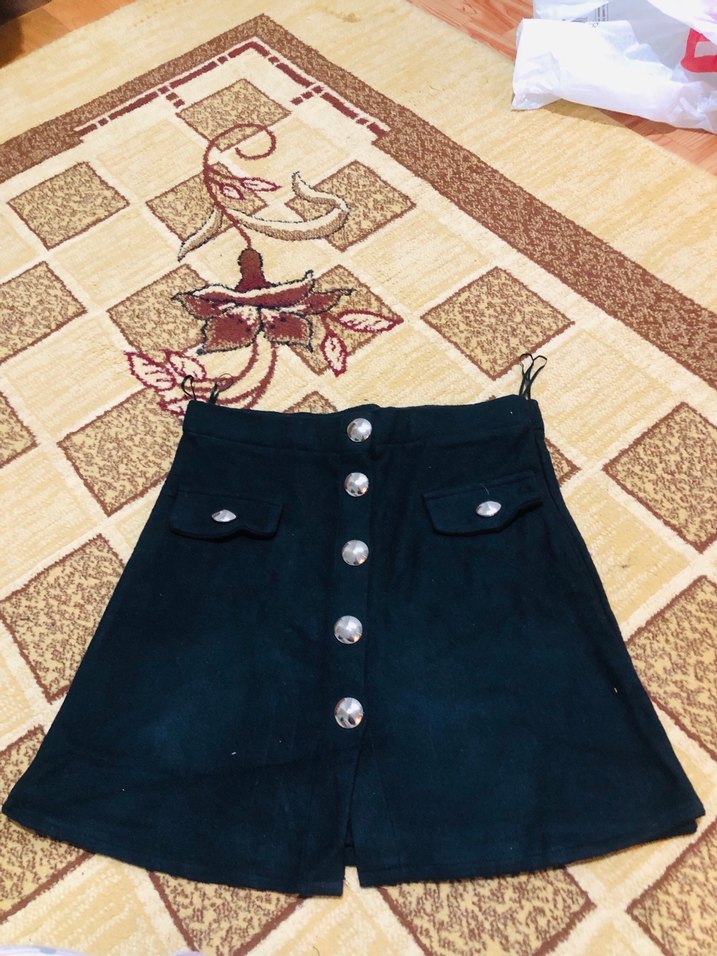 Düğmeli ön kısmı ve bol kesimiyle siyah süet mini etek, vintage sokak tarzına uygun nakış detaylarıyla günlük kullanıma uygun. İade yoktur
