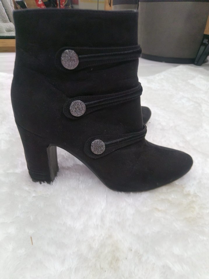 Düğmeli Siyah Süet Topuklu Kadın Bot