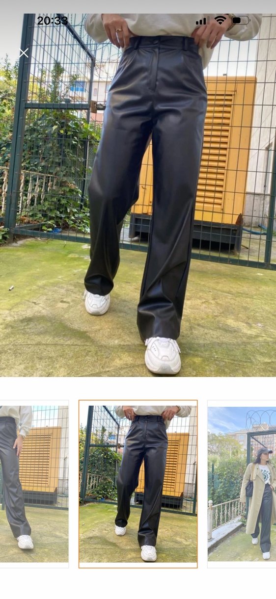 Düğmeli, parlak siyah suni kumaştan yapılmış, midi boy ve regular fit kesime sahip sokak tarzı pantolon. Outdoor kullanıma uygundur.