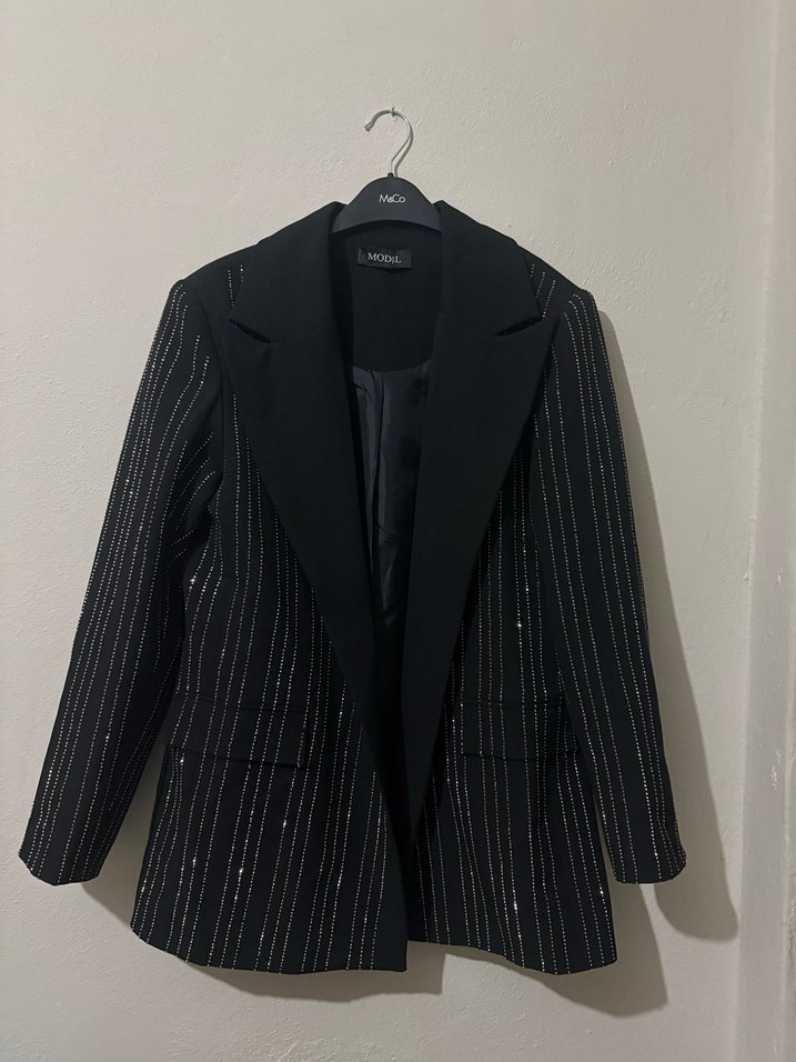 Düğmeli Siyah Taşlı Kadın Blazer Ceket