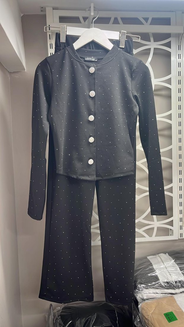 Düğmeli Siyah Taşlı Kadın Takım
