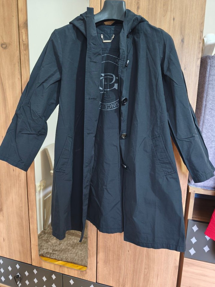 Düğmeli Siyah trençkot