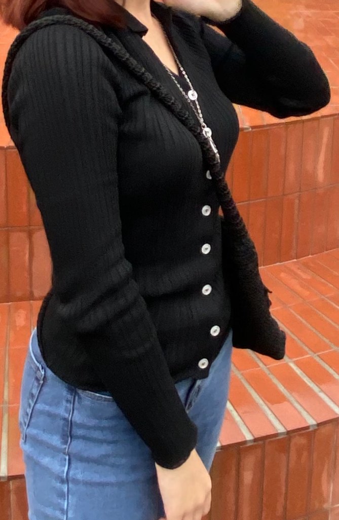 Düğmeli Siyah Triko Kadın Kazak