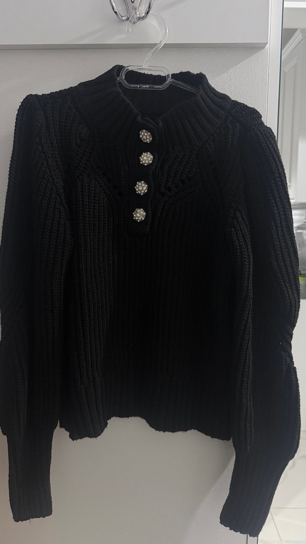 Düğmeli Siyah Triko Kadın Kazak