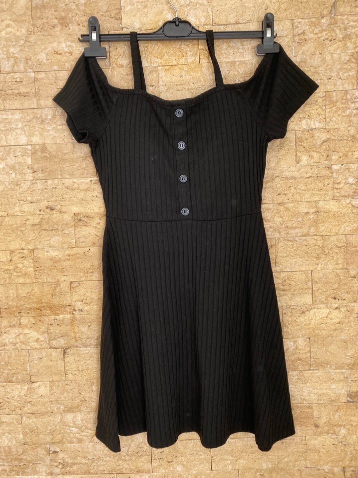 Düğmeli Siyah Triko Midi Elbise