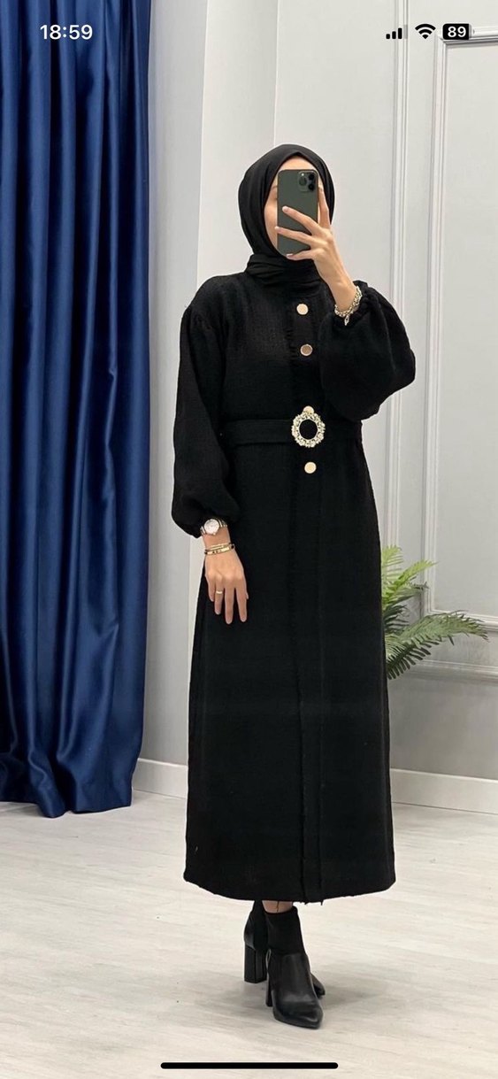 Düğmeli Siyah tüvit tesettür elbise