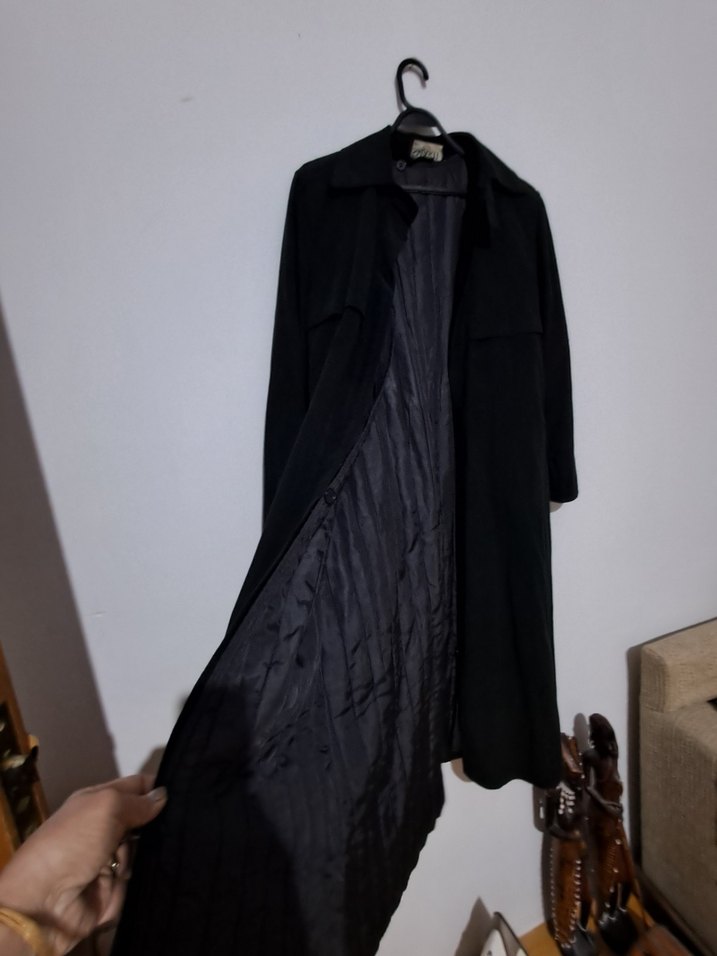 Düğmeli, siyah erkek midi kaban, notched yakalı ve uzun kolludur. Regular fit, sentetik kumaştan olup ofis için uygundur. Klasik ve sokak stili uyumlu.güderı tarzı kumaş