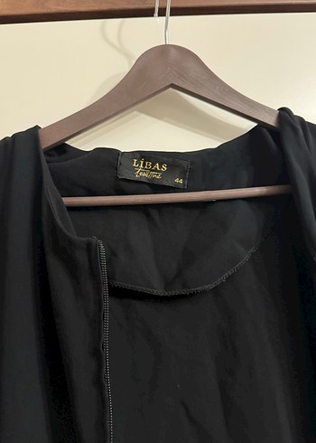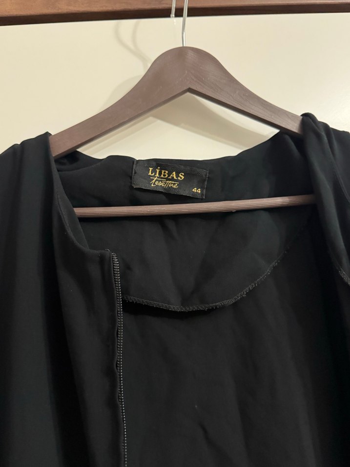 LiBAS markasına ait siyah, düğmeli, kolsuz hamile yeleği. Uzun boylu, gevşek kesim ve satenimsi kumaştan üretilmiştir. Günlük kullanıma uygundur.