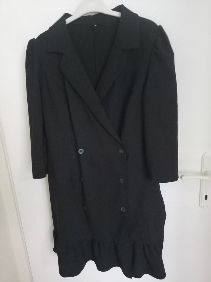 Siyah uzun kadın elbise, düğmeli ve kesikli yaka detayına sahiptir. Sentetik kumaştan, uzun kollu ve regular fit olarak tasarlanmıştır. Ofis ve günlük kullanım için uygundur.