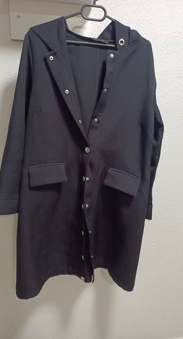 44 beden tunik Düğmeli kapama ve kesik yaka detaylı siyah uzun kaban. Uzun kollu, regular fit kesimi ve sentetik kumaştan üretilmiştir. Günlük kullanıma uygundur.