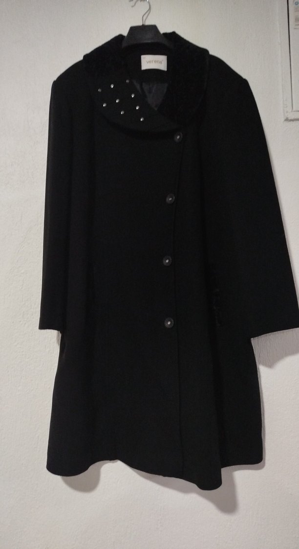 Düğmeli Siyah Uzun Kadın Kaban